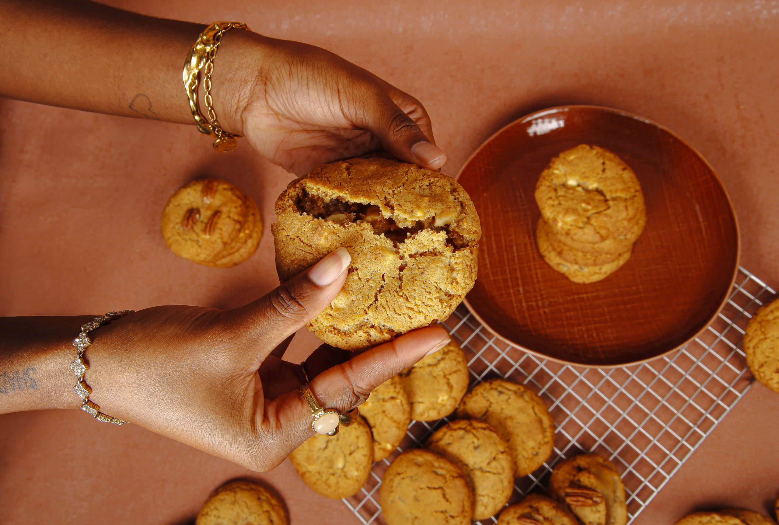 Des cookies maison ultra gourmands, où la pistache dévoile sa douceur délicate, la noix de pécan apporte son croquant irrésistible et les pépites de chocolat fondent à coeur.. Un équilibre parfait entre caractère et réconfort, tout juste sortis du four